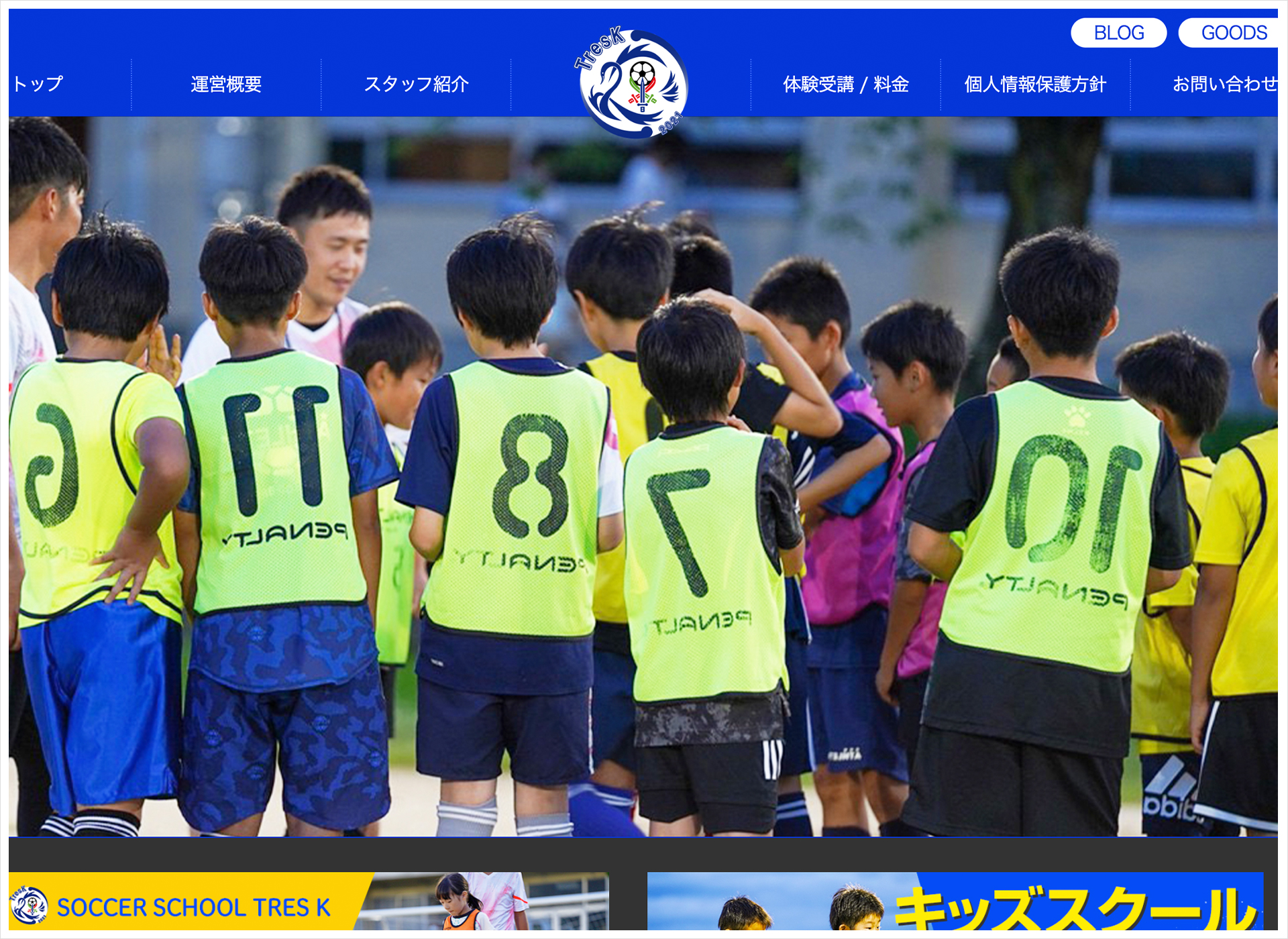 徳島県阿波市を拠点に活動されているサッカースクール TRES K 様のサイトを制作させていただきました。設計からデザイン、コーディング、WordPress実装までを担当いたしました。