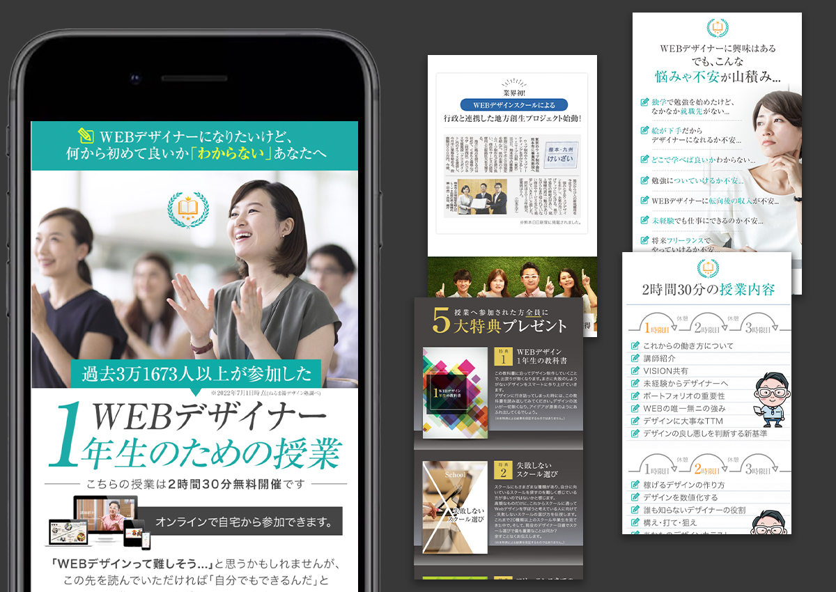 Webデザイナーを育成するオンラインデザインスクールサービスを提供されているぬるま湯デザイン塾様のLP制作に携わらせていただきました。デザインとメインはコーディング実装を担当いたしました。