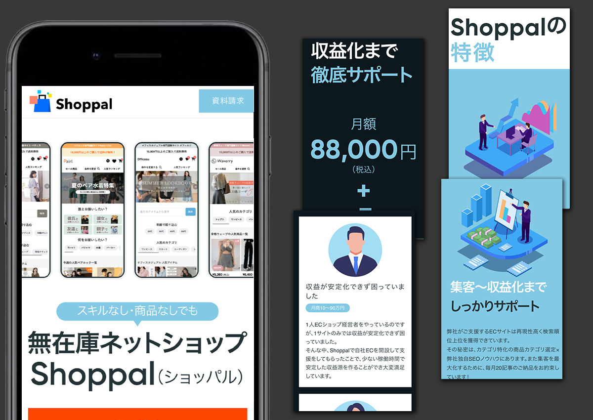 無在庫ネットショップを開設できるサービスを提供されている株式会社fulmo様のLP制作に携わらせていただきました。デザインとコーディング実装を担当いたしました。