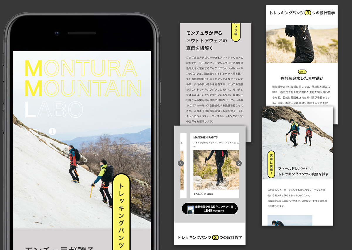 アウトドアブラド大手モンチュラ様のトレッキングパンツのLP制作に携わらせていただきました。デザインとコーディング実装を担当いたしました。